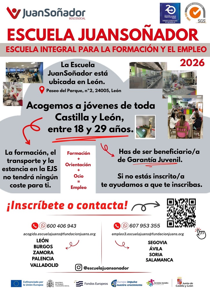 Más información: Juan Soñador, Paseo del Parque nº 2 de León, teléfono 600406943, email acogida.escuelajuans@fundacionjuans.org .