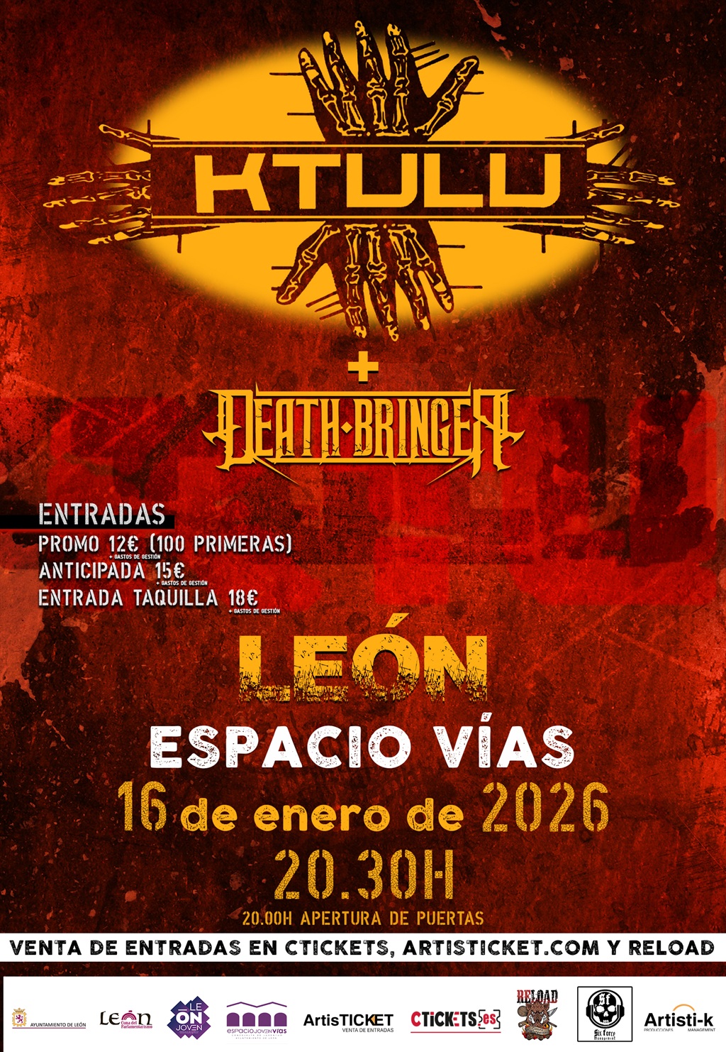 La banda de metal Ktulu ofrecerá un concierto en Espacio Vías (León) el próximo 16 de enero de 2026. El evento contará también con la participación del grupo local Death Bringer, que será el encargado de abrir la jornada.