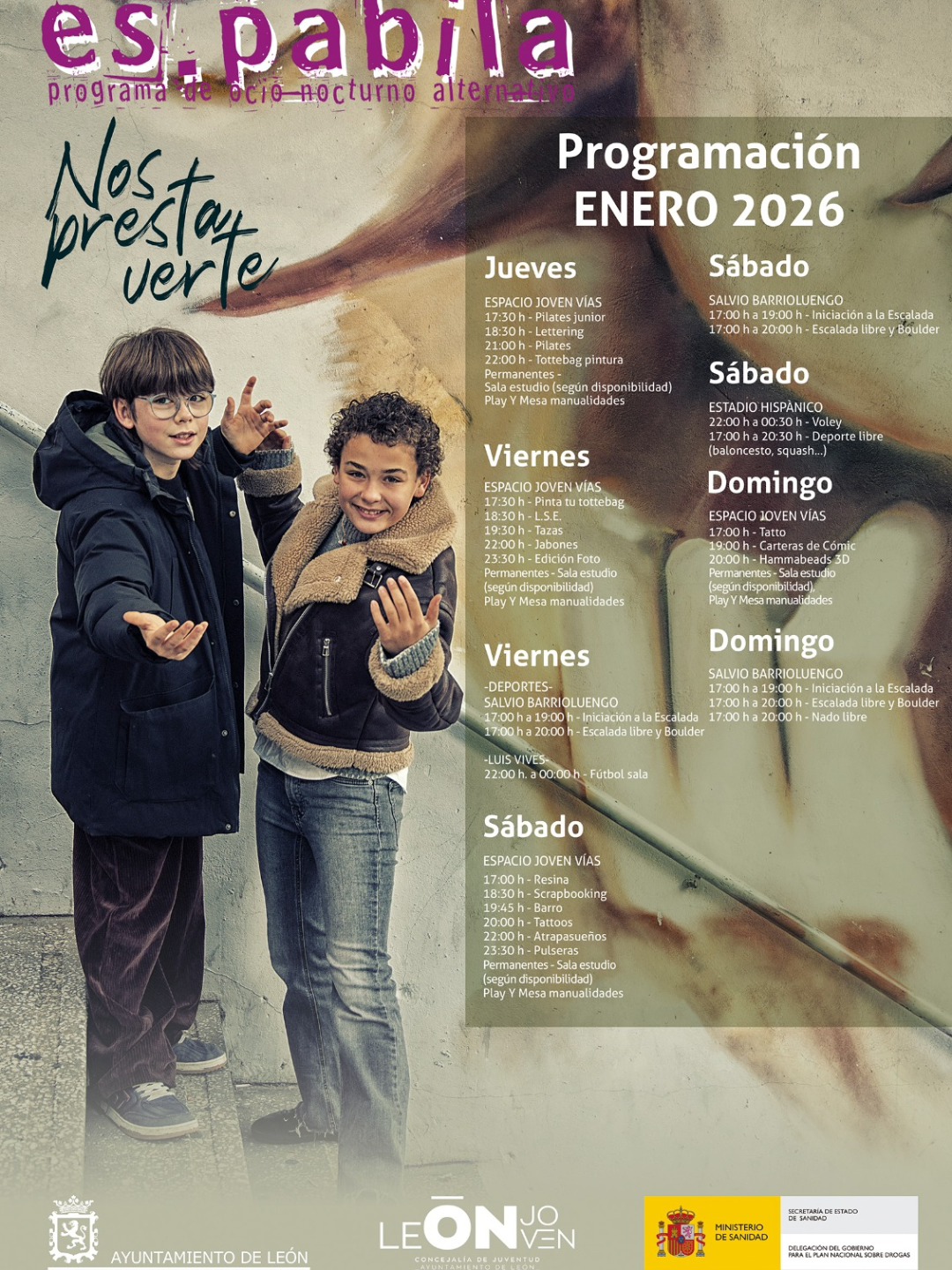 El programa es.pabila está financiado por el Plan Nacional sobre Drogas y el Ayuntamiento de León, depende de la Concejalía de Juventud Leónjoven y tiene como objetivo ofrecer alternativas saludables al ocio comercial a través de una oferta extensa de talleres y actividades de todo tipo de jueves a domingo. Ofrece actividades deportivas, talleres plásticos, de expresión musical y multimedia, danza y bienestar, habilidades sociales, conciertos, y colabora con asociaciones en la organización de diversos eventos.