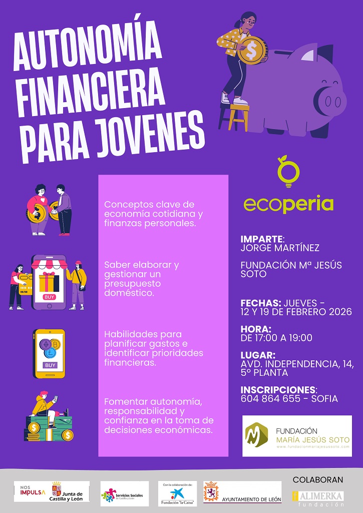 Taller gratuito sobre la Autonomía Financiera para Jóvenes el 12 y 19 de febrero.